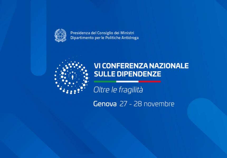 Sabato 27 e domenica 28 novembre Genova ospiterà a Palazzo Ducale la VI Conferenza Nazionale sulle Dipendenze, dal titolo Oltre le fragilità. La conferenza, prevista con cadenza triennale, e la cui ultima edizione si è tenuta a Trieste nel 2009, ha lo scopo di approfondire le questioni connesse alla diffusione di sostanze stupefacenti e psicotrope e di ricercare soluzioni per le problematiche di un mondo, quello del disagio e delle fragilità, che da troppo tempo non ha l’attenzione che merita.