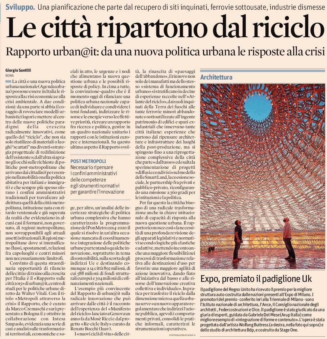 - Le città ripartono dal riciclo. Rapporto urban@it: da una nuova politica urbana le risposte alla crisi (Il Sole 24 Ore, 30/09/2015)