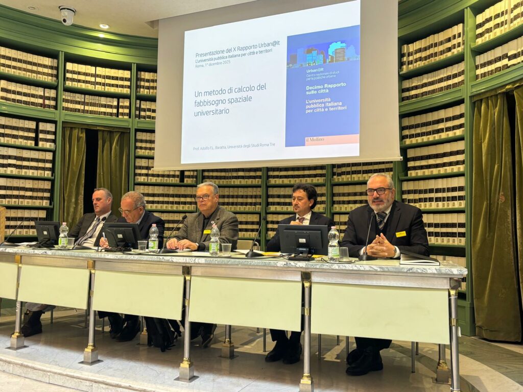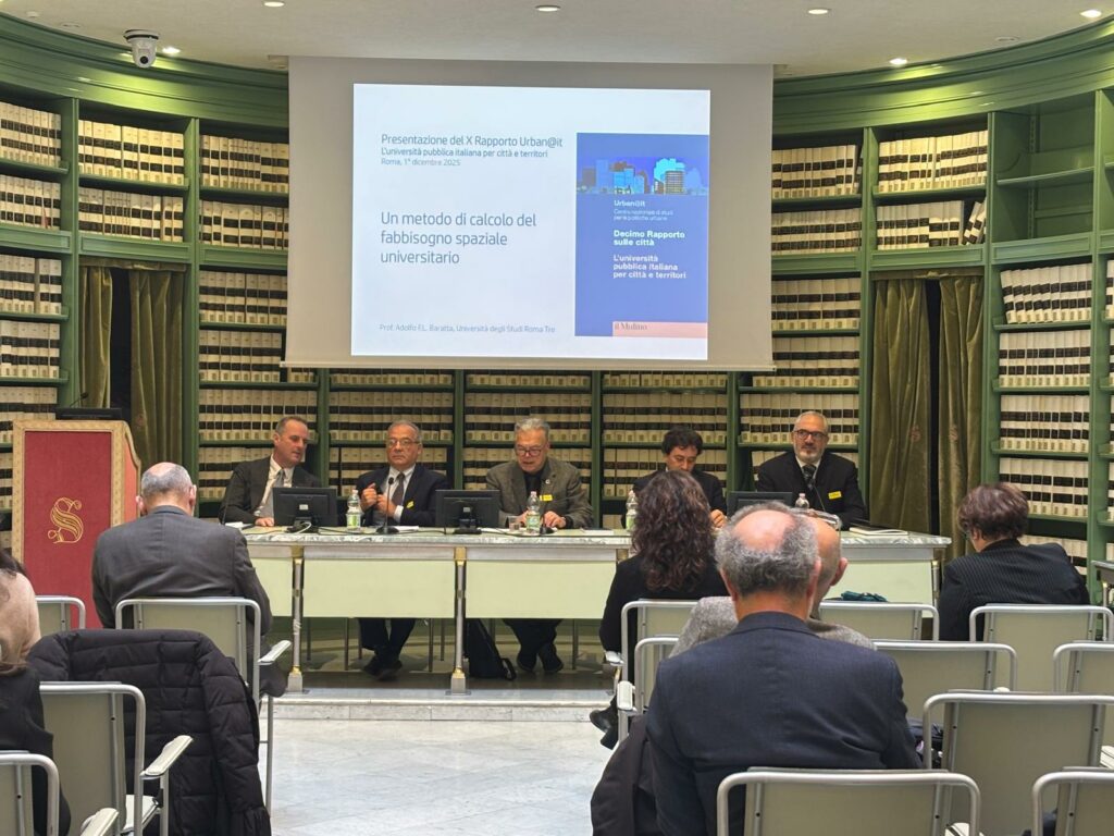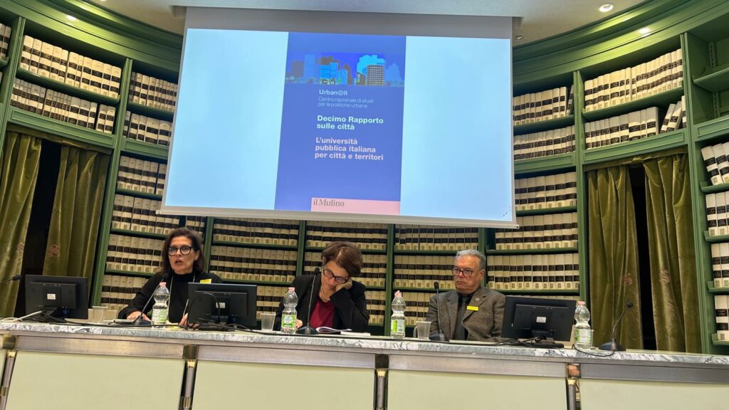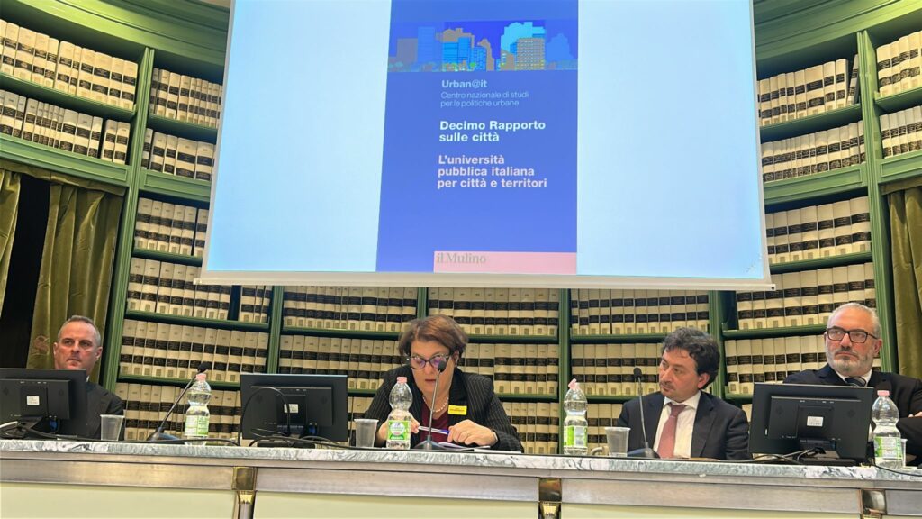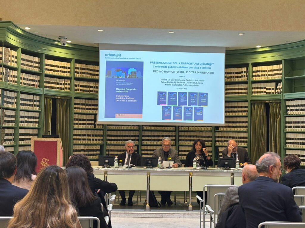 Nell’ambito delle attività promosse dal Centro Nazionale di Studi per le Politiche Urbane Urban@it, in collaborazione con la Vicepresidente del Senato sen. Anna Rossomando, si é svolta lunedì 1 dicembre 2025 a Romapresso la Sala degli Atti parlamentari della Biblioteca del Senato “Giovanni Spadolini” la presentazione del X Rapporto sulle città dal titolo “L’Università Pubblica italiana per città e territori” (ed. Il Mulino) curato da Daniela De Leo, dell’Università Federico II di Napoli, da Fabio Giglioni della Sapienza Università di Roma e da Nicola Martinelli del Politecnico di Bari.